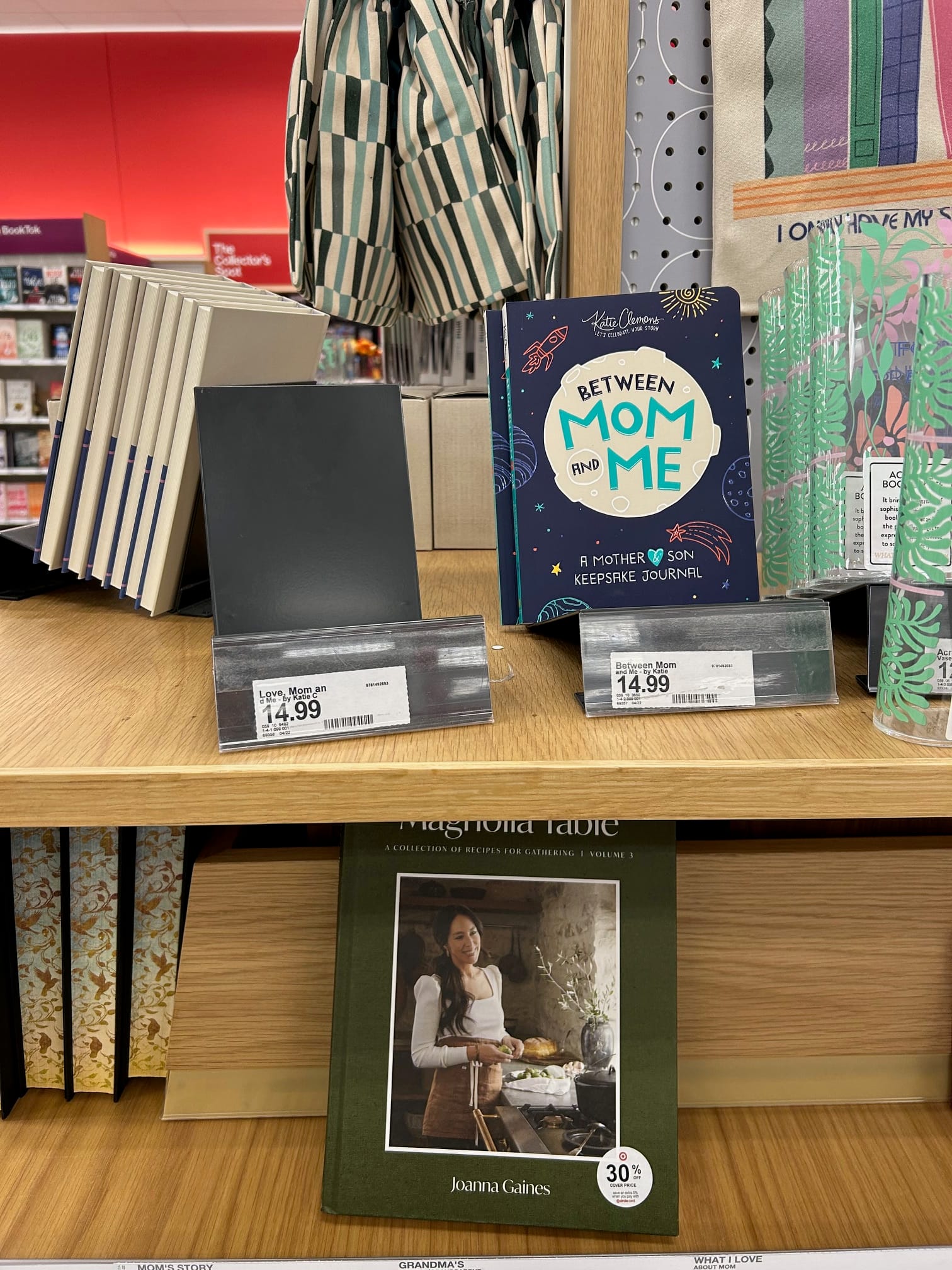 A pinch-me moment with my two boys: seeing Between Mom and Me on Target’s end caps!