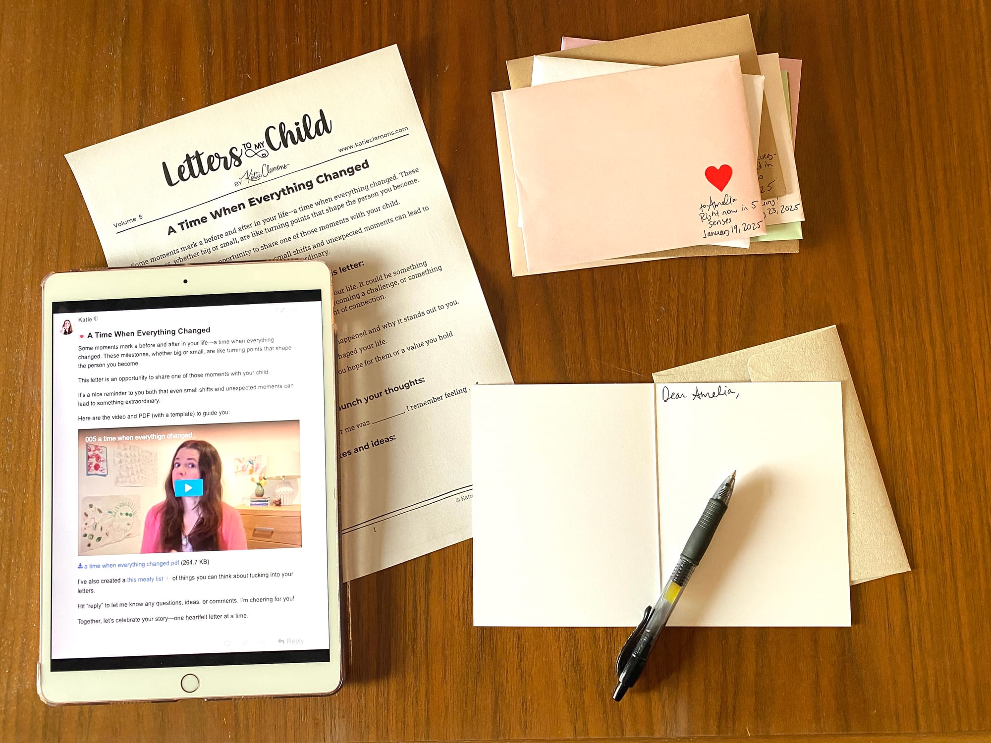 - A weekly letter invitation — everything you need to write that week’s letter, including a short prompt, a printable guide, and a brief encouragement video from me.